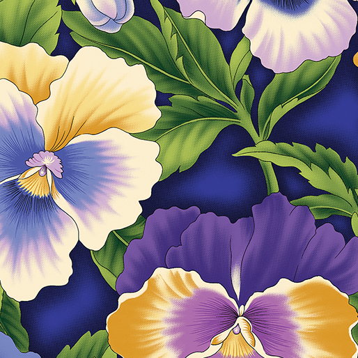 Tags: 100% cotton, 44"/45", Benartex, Flower Festival, oversized pansies, purple