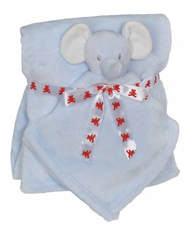 This soft, adorable, blue elephant will make the perfect gift and the cuddliest friend. Large blanket is 30in x 40in. The accompanying smaller blanket is 16in x 16in square.