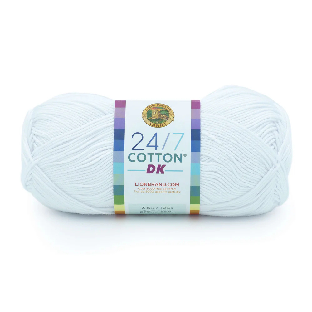 24/7 Cotton DK brings the shine, stitch clarity, and versatility you already love, now with a lighter touch. This mercerized cotton yarn adds just the right drape to warm-weather garments, lacy shawls, or kitchen staples that hold up to daily use. With a wide palette of vibrant and neutral shades, it’s the kind of yarn for knitting or crocheting that invites repeat use across every season. 4 oz medium